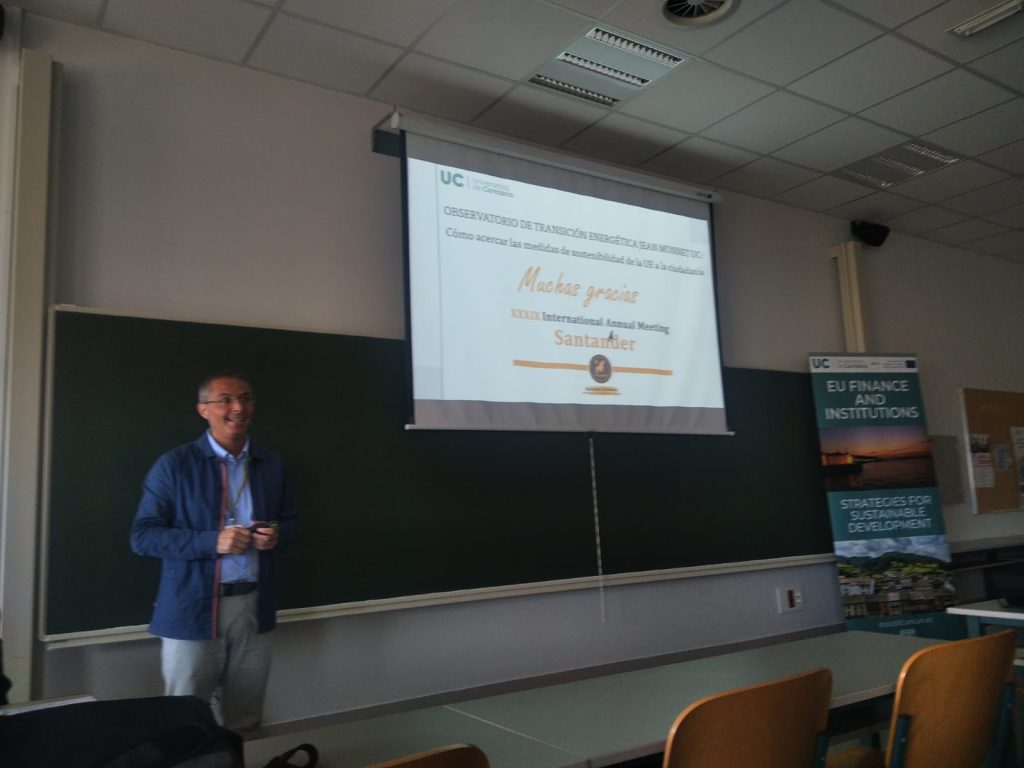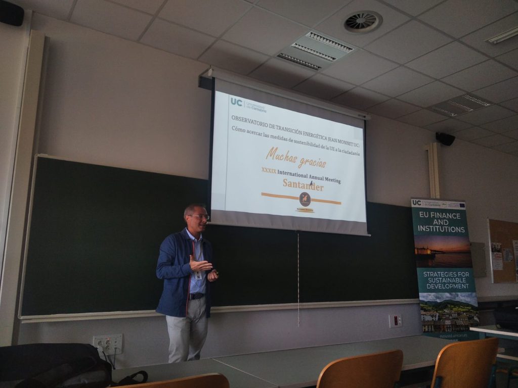Su intervención, titulada “Observatorio de Transición Energética Jean Monnet UC: Cómo acercar las medidas de sostenibilidad de la UE a la ciudadanía”, abordó los retos y oportunidades asociados a la comunicación de las políticas europeas en materia de sostenibilidad.